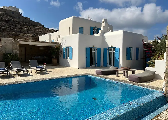 Guests can dine in an equipped kitchenette, as well as a dining area, provided at this Ornos accommodation. There is also a refrigerator, a toaster, and a cooktop available in the kitchen. Offering Greek dishes, Apaggio Restaurant is within a few blocks of the villa. This accommodation is also 5 km from Mykonos Island National airport.